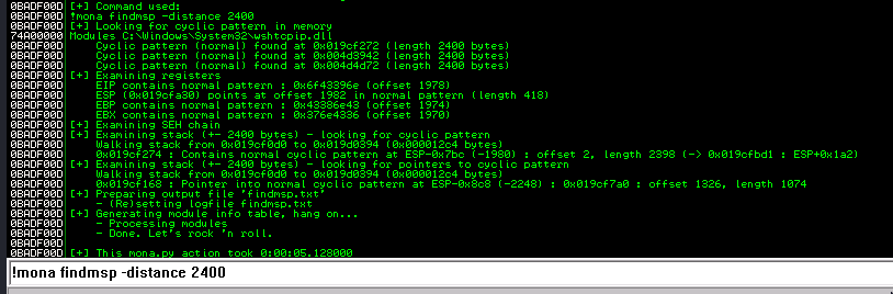 As we can see in the output, mona found the EIP at offset 1978, we can update the offset