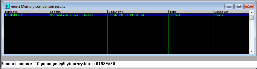 !mona compare -f C:\mona\oscp\bytearray.bin -a <ESP address>