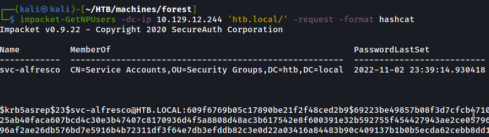 In this case the hash was able to be cracked easily with hashcat and rockyou, however it might not always be this easy to crack the hash.