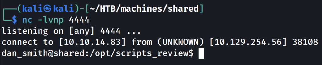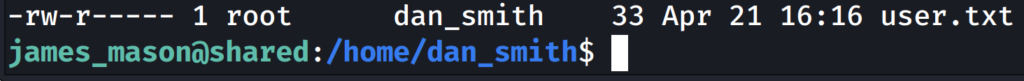 We can then use these credentials to SSH onto the box. But this is not enough to get the user flag, to get the user flag we will have to escalate our privileges to the dan_smith user as the flag is only readable by him and root.