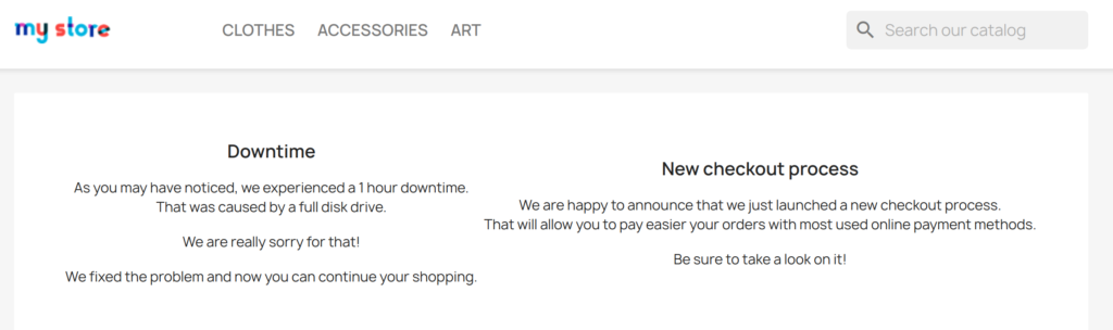 . After doing so, we are presented with a online store that mentions a new checkout process on the front page.