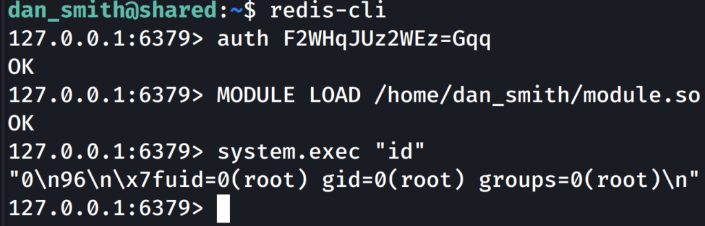 With access to Redis we can use RedisModules-ExecuteCommand to execute commands as root.