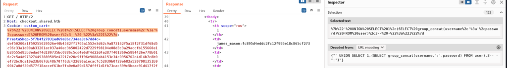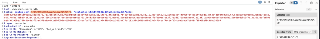 Taking a closer look at the request used to get the page we see that in the custom_cart