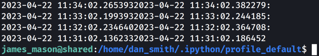 This could be a good target since it looks like iPython is being ran every minute under the dan_smith user. Getting the version (8.0.0) by simply running ipython