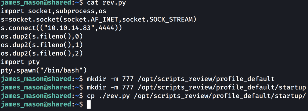 directory. With this information we can rip a Python reverse shell off of revshells.com